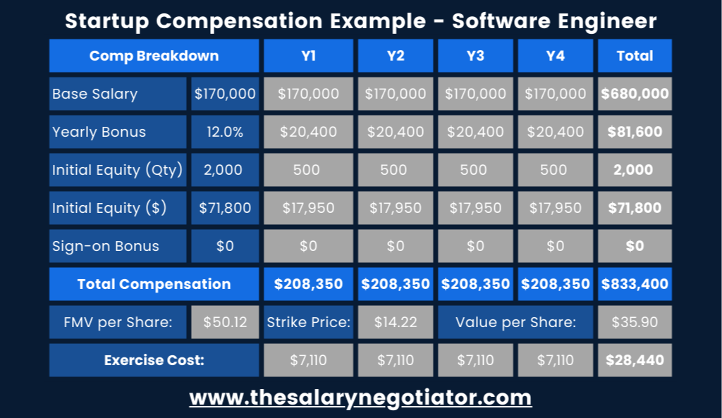 A successful salary negotiation with a startup will be impossible if you don’t have a clear understanding of what’s included in your startup compensation package. This means evaluating all elements that contribute to your total compensation at startup, and not just the base salary.
